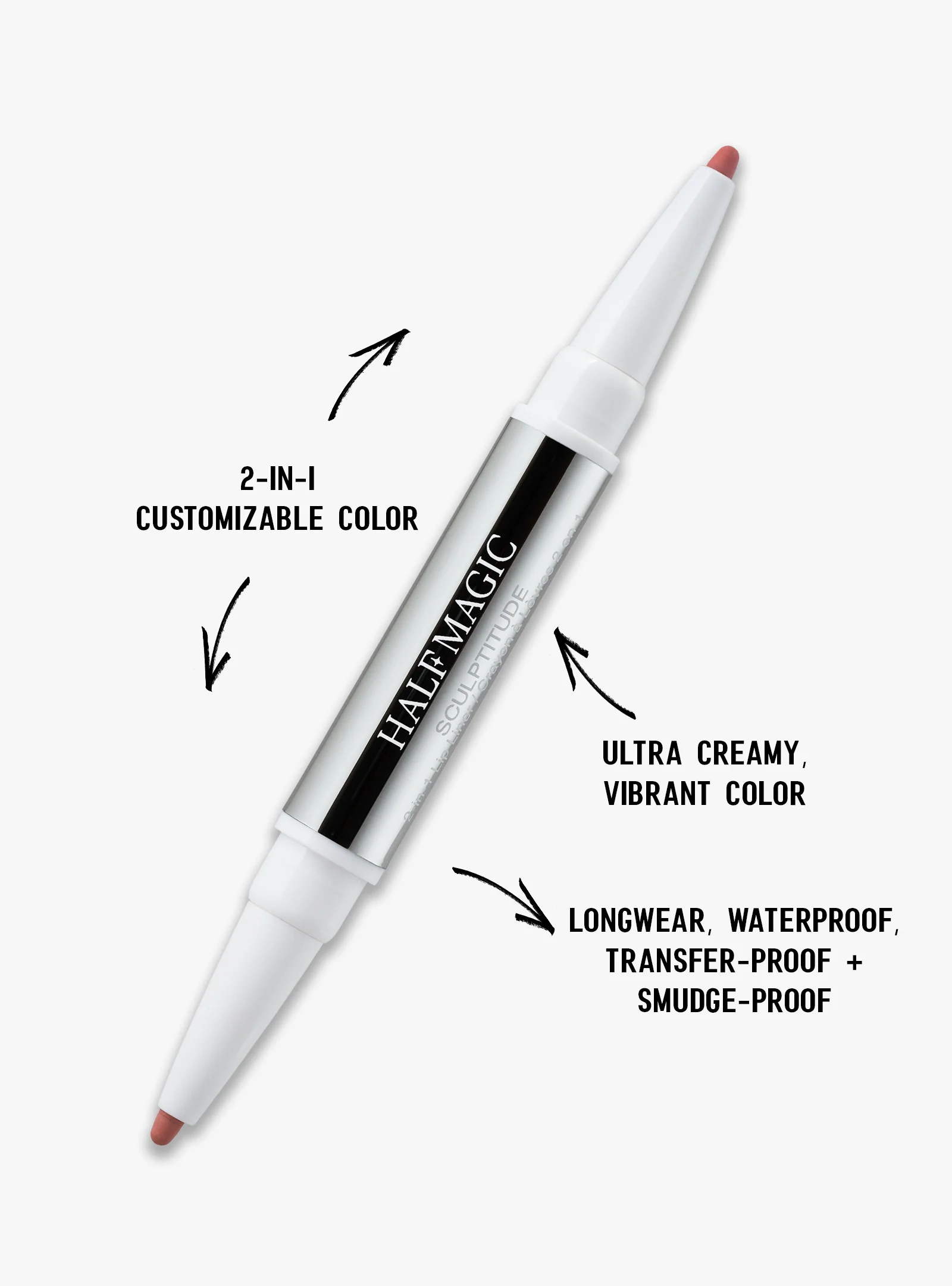 A 2-in-1 longwear lip liner in complementary shades, formulated to define lips and keep color in place all day. Wear all over lips for longwear color, or mix and match with MAGIC DRIP, LIP SNUGGLE, MOUTH CLOUD or your favorite lip to create your perfect custom color or lip combo.