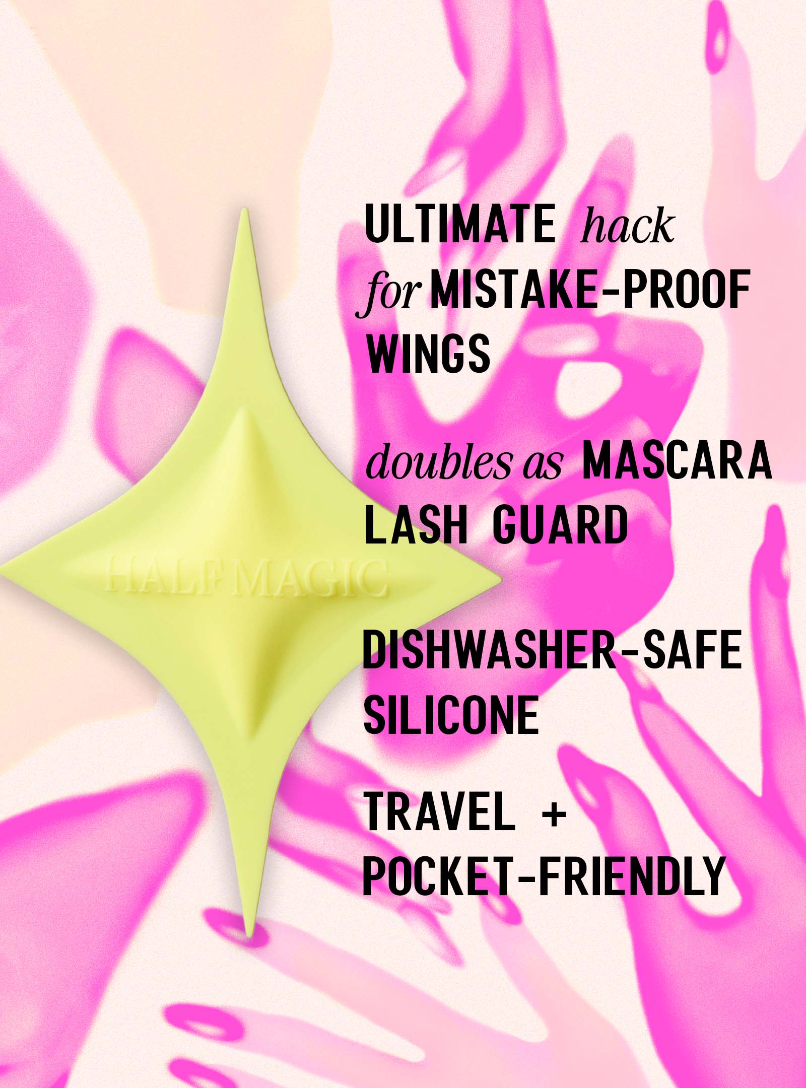 Silicone tool for a mistake-proof way to draw perfectly crisp wings for your most daring eye makeup looks.
